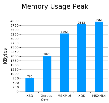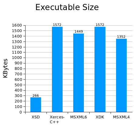 Executable sizes for XDK and MSXML were measured as the sum of the executable size and the parser library size since these parsers are only available as DLLs.